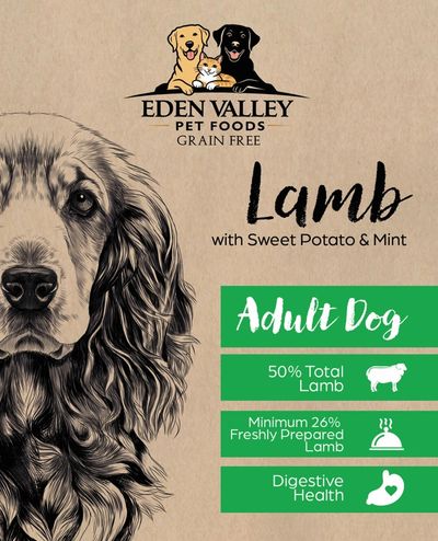 Lamb 50% (including Freshly Prepared Lamb 30% , Dried Lamb 18%, Lamb Stock 2%), Sweet Potato 23%, Peas (9%) Potato,Pea Protein, Beet Pulp, Linseed, Omega 3,Minerals, Herbs, MOS & FOS