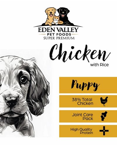 Chicken 38% (including Dried Chicken 31%, Chicken Fat 5% & Chicken Gravy 2%), Rice (26%), Maize, Oats, Beet Pulp (5%) Free Range Egg, Brewers Yeast, Linseed,Minerals, Omega 3, MOS, FOS, Glucosomine, Chondroitin.